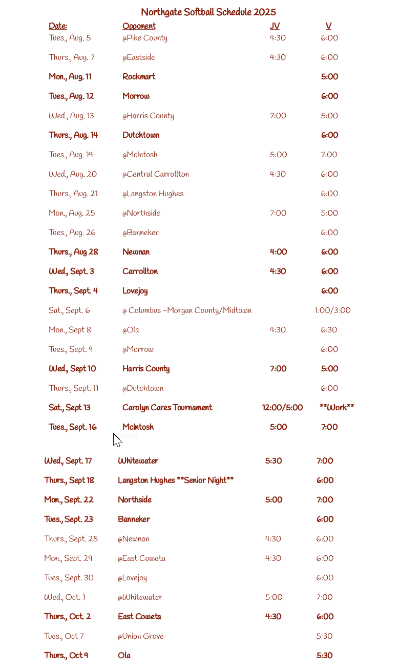 Our players in Georgia are starting up their High School Softball Season in August. While they are representing their schools, our Non-GA Players will be hitting the Camp circuit and fit in a little bit of rest after their Spring High School Season and Summer Travel ball. You can find our players camp schedules on their individual profiles and our GA Players High School Schedules are available by clicking on the links to the right, or on the players profile page, above.